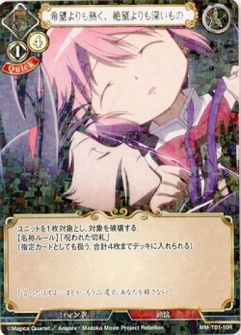 ビルディバイドTB Vol.1 魔法少女まどか☆マギカ シリーズ【パラレル】レア・ノーマル【Rパラレル】希望よりも熱く、絶望よりも深いものの通販、販売ならまとめ買い、箱買い、シングル激安販売のカード王プレミアム。