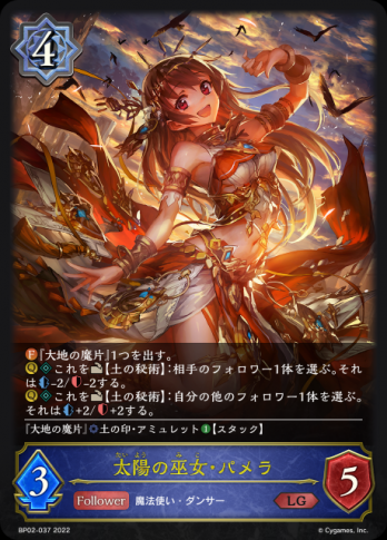 Shadowverse EVOLVEBP第2弾「黒銀のバハムート」LG【LG】太陽の巫女・パメラの通販、販売ならまとめ買い、箱買い、シングル激安販売のカード王プレミアム。