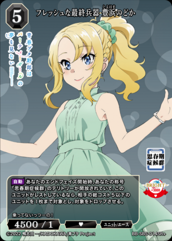ビルディバイト-ブライト-BP「青春ブタ野郎」シリーズスーパーレア+(SR+)【SR+】フレッシュな最終兵器 豊浜のどかの通販、販売ならまとめ買い、箱買い、シングル激安販売のカード王プレミアム。