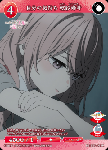 ビルディバイト-ブライト-BP「その着せ替え人形は恋をする」レア(R)・ノーマル(N)【R】自分の気持ち 乾紗寿叶の通販、販売ならまとめ買い、箱買い、シングル激安販売のカード王プレミアム。