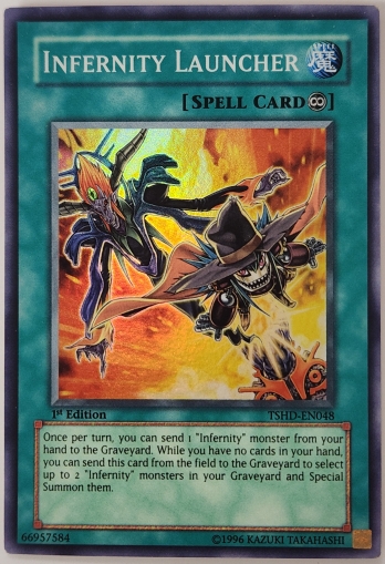 遊戯王海外版 ゲートボール用【魔法カード】【SR】Infernity Launcher (1st Edition) インフェルニティガンの通販、販売ならまとめ買い、箱買い、シングル激安販売のカード王プレミアム。