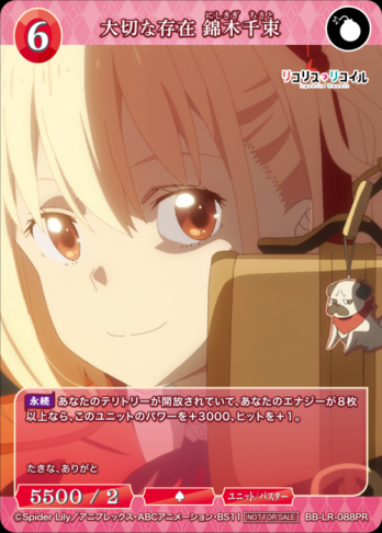 ビルディバイト-ブライト-BP「リコリス・リコイル」プロモ+(PR+)・プロモ(PR)【PR】大切な存在 錦木千束の通販、販売ならまとめ買い、箱買い、シングル激安販売のカード王プレミアム。