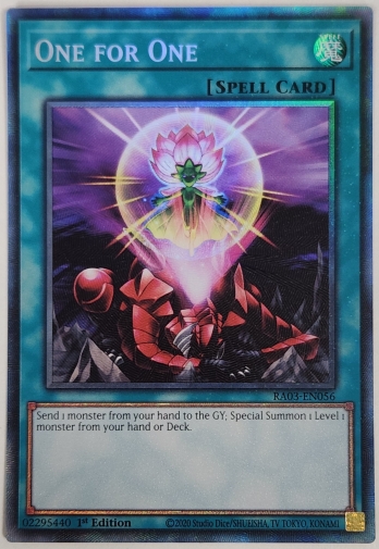 遊戯王【EU版】Quarter Century Bonanza クォーター・センチュリー・ボナンザ シングルカード【魔法カード】【CR】One for One ワン・フォー・ワン (1st Edition)の通販、販売ならまとめ買い、箱買い、シングル激安販売のカード王プレミアム。