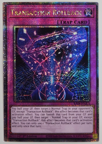 遊戯王【EU版】Quarter Century Stampede クォーター・センチュリー・スタンピード シングルカード【罠(トラップ)カード】【QCSE】Transaction Rollback トランザクション・ロールバック (1st Edition)の通販、販売ならまとめ買い、箱買い、シングル激安販売のカード王プレミアム。